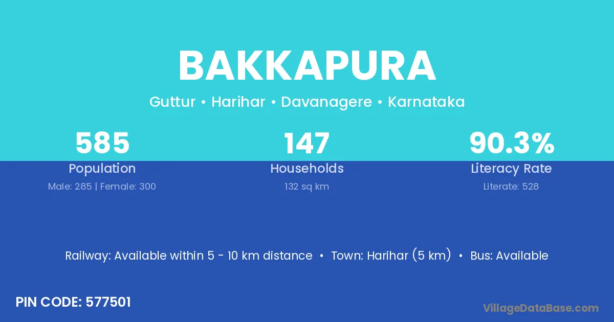 Harihar (5 km) is the nearest town to Bakkapura village for major economic activities and is located approximately 5 km away.