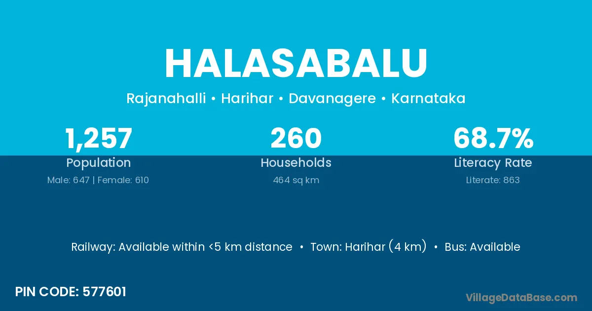 Harihar (4 km) is the nearest town to Halasabalu village for major economic activities and is located approximately 4 km away.
