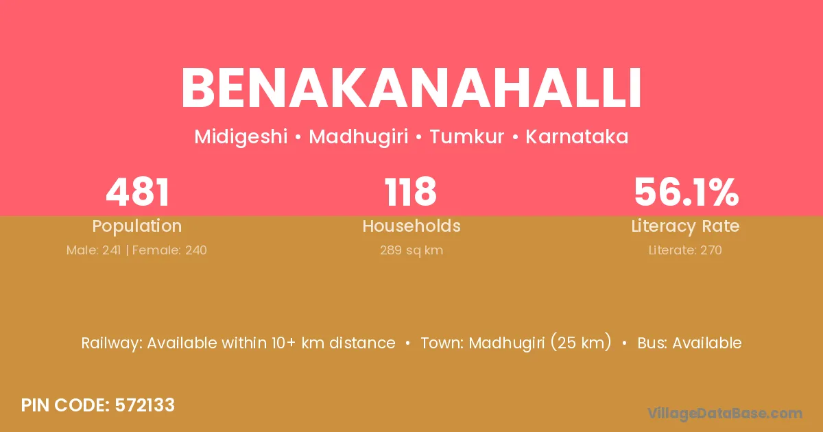 Benakanahalli village has a total population of 3,256 people, of which 1,637 are males and 1,619 are females.