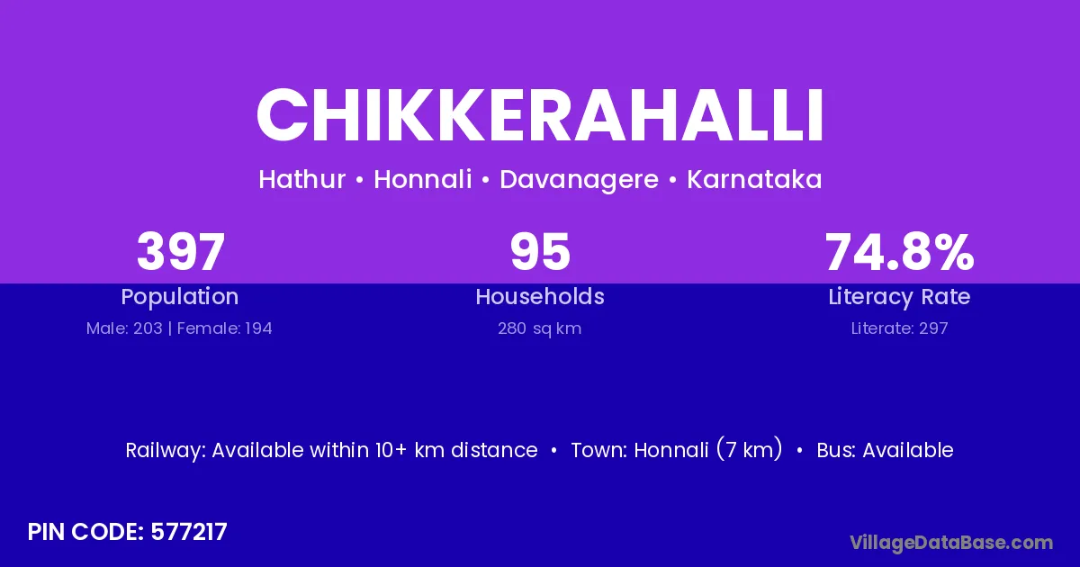 Honnali (7 km) is the nearest town to Chikkerahalli village for major economic activities and is located approximately 7 km away.