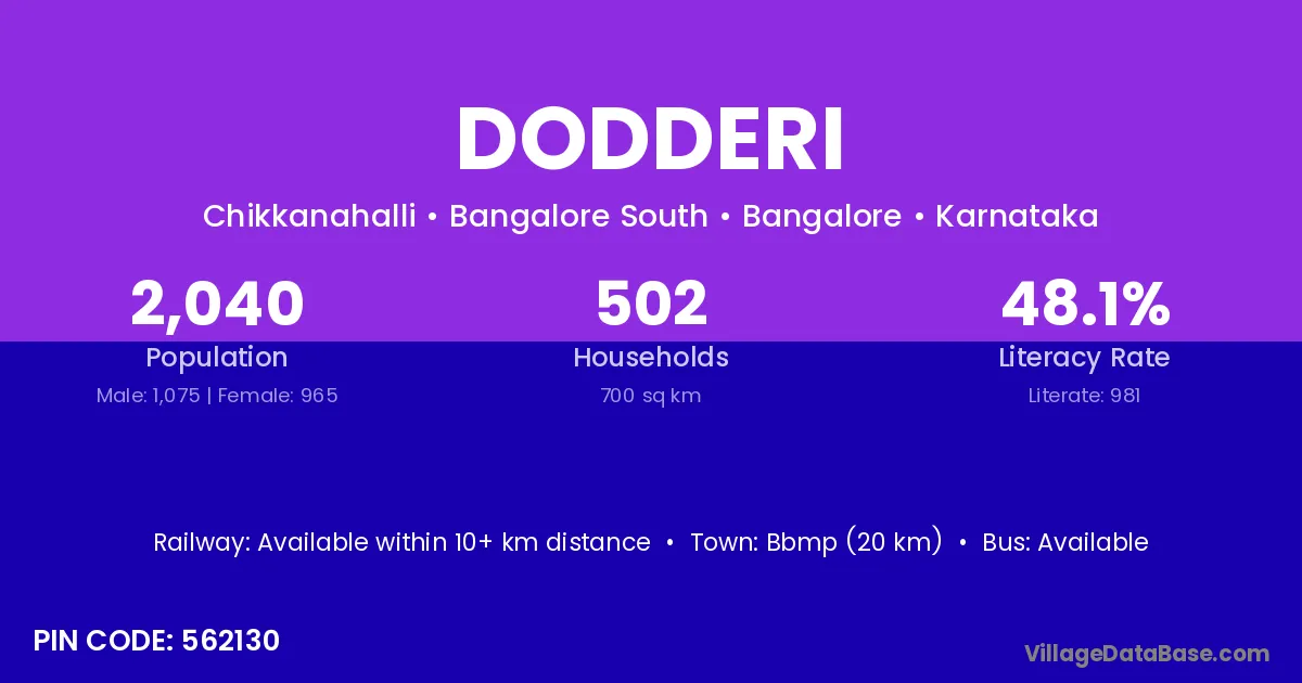 Honnali (18 km) is the nearest town to Dodderi village for major economic activities and is located approximately 18 km away.