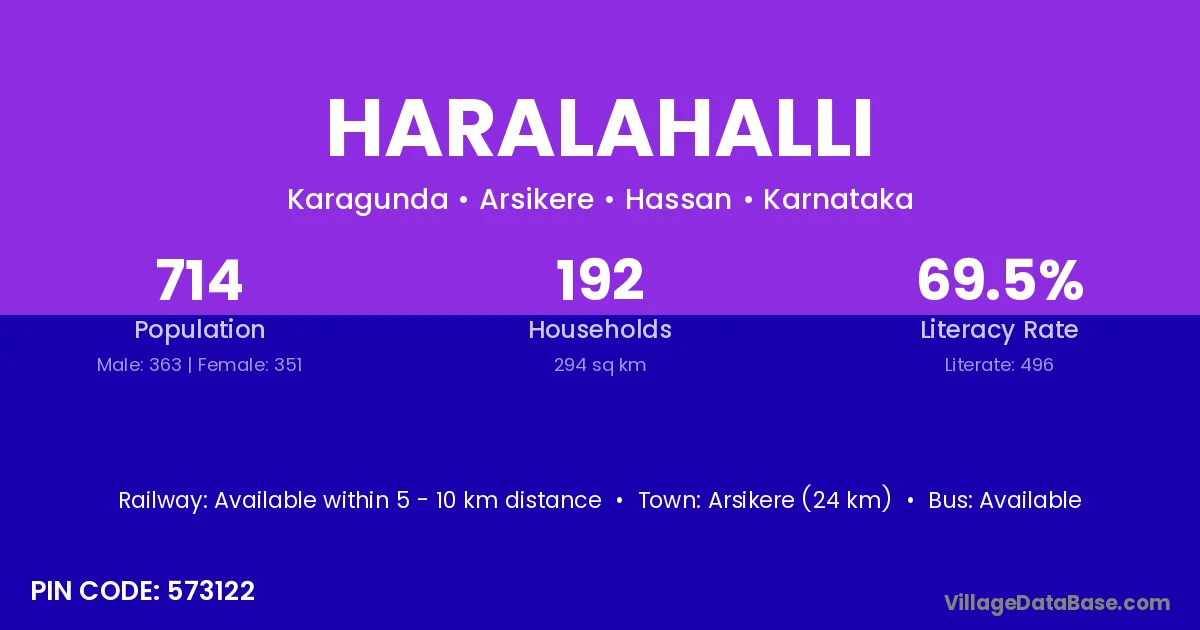 Honnali (6 km) is the nearest town to Haralahalli village for major economic activities and is located approximately 6 km away.