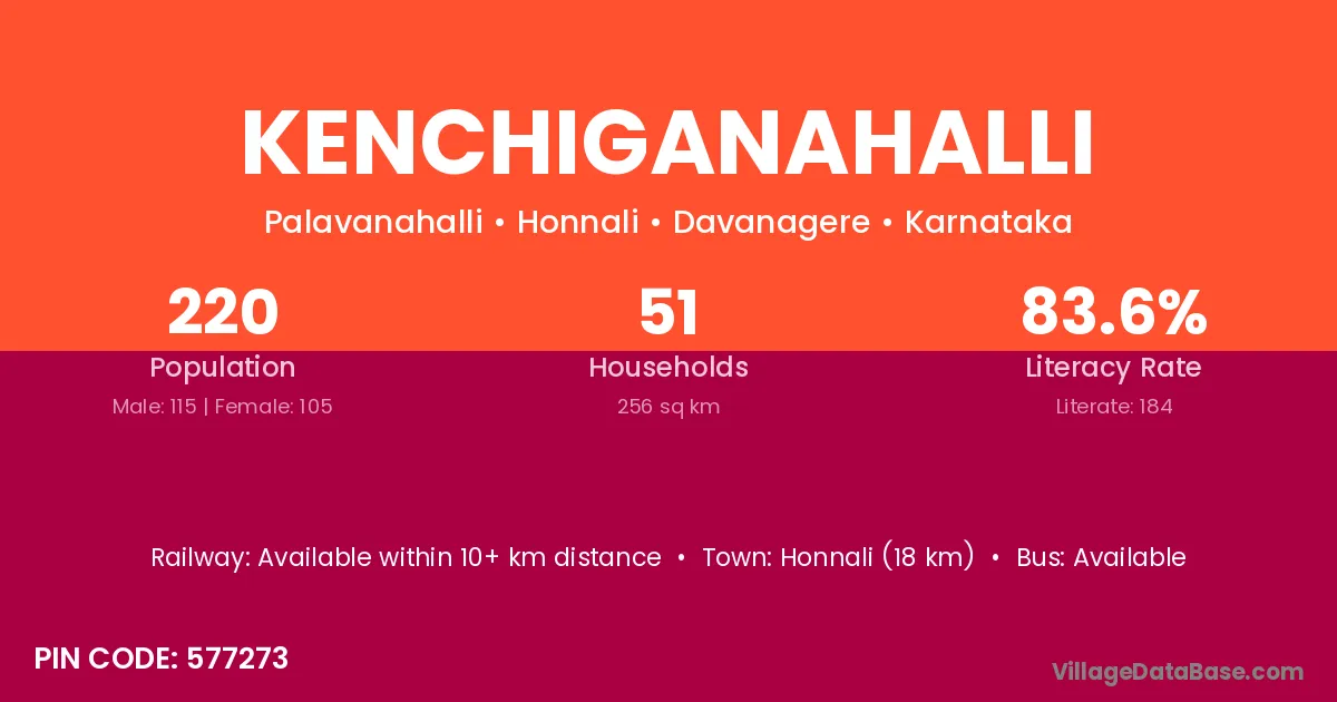Kenchiganahalli village has a total population of 220 people, of which 115 are males and 105 are females.