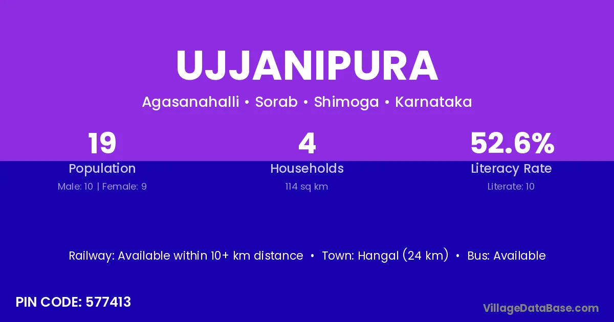 Honnali (16 km) is the nearest town to Ujjanipura village for major economic activities and is located approximately 16 km away.
