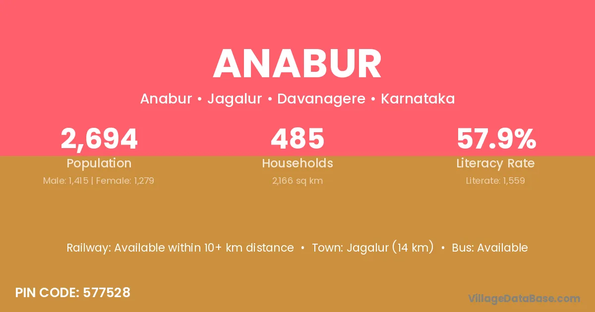 Jagalur (14 km) is the nearest town to Anabur village for major economic activities and is located approximately 14 km away.