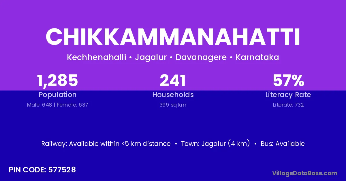 Jagalur (4 km) is the nearest town to Chikkammanahatti village for major economic activities and is located approximately 4 km away.