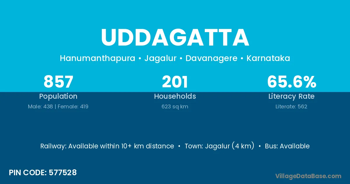 Jagalur (4 km) is the nearest town to Uddagatta village for major economic activities and is located approximately 4 km away.