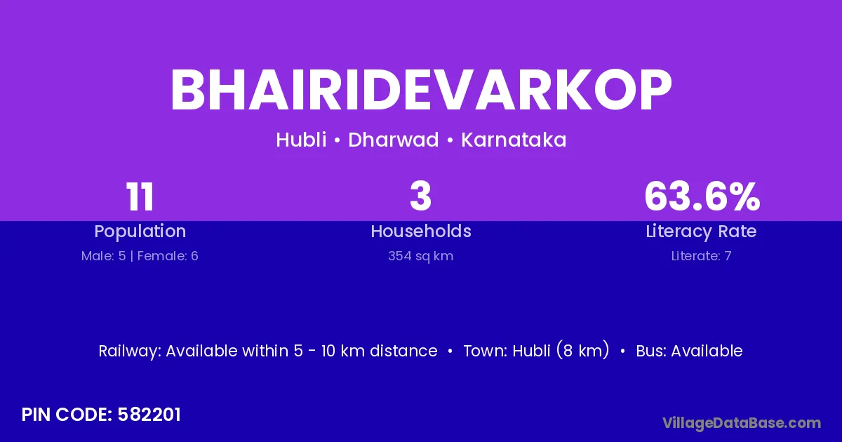 Hubli (8 km) is the nearest town to Bhairidevarkop village for major economic activities and is located approximately 8 km away.