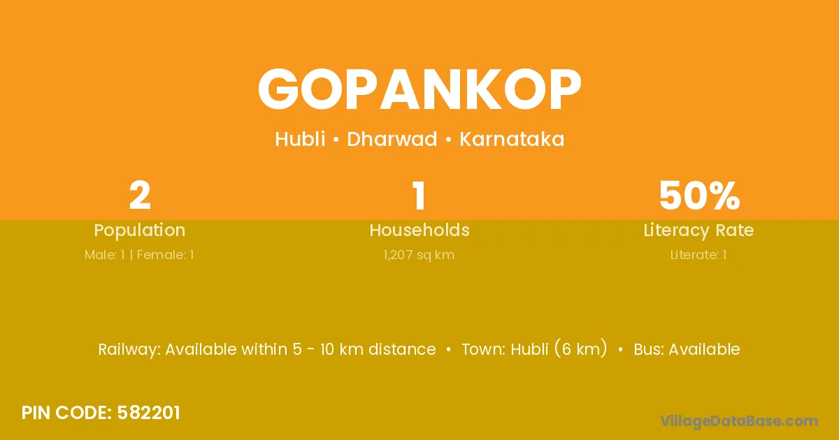 Hubli (6 km) is the nearest town to Gopankop village for major economic activities and is located approximately 6 km away.