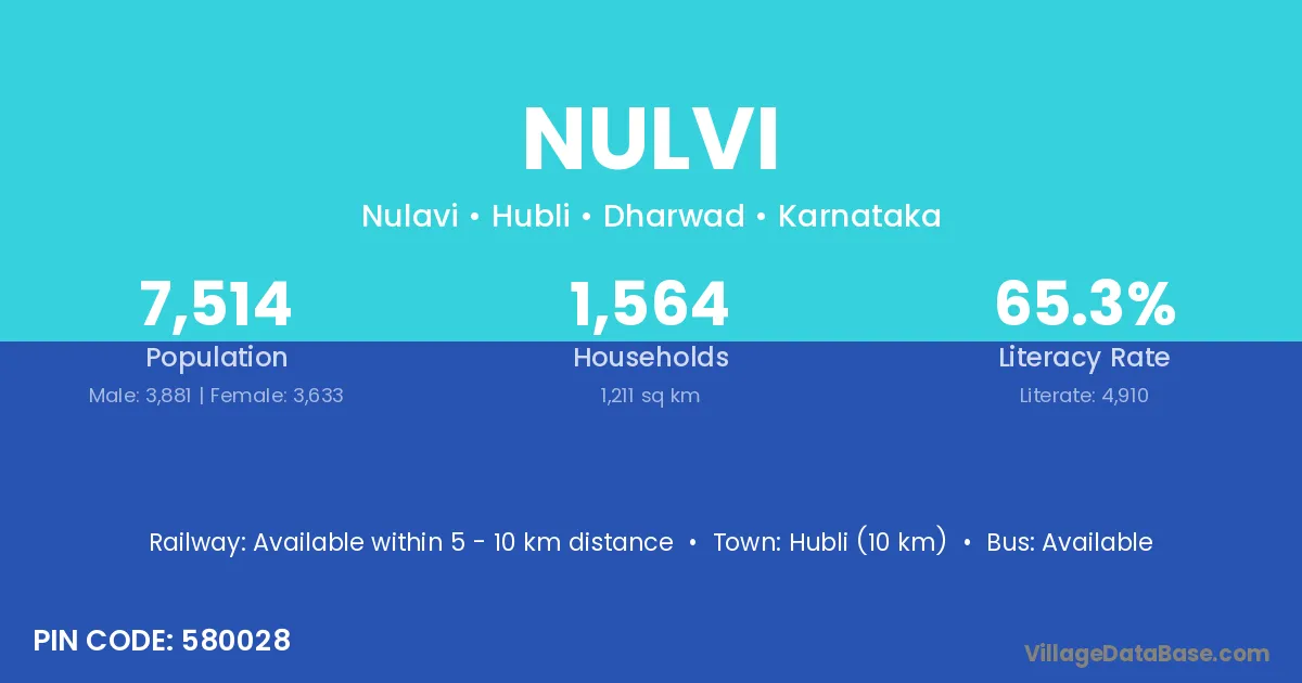 Hubli (10 km) is the nearest town to Nulvi village for major economic activities and is located approximately 10 km away.