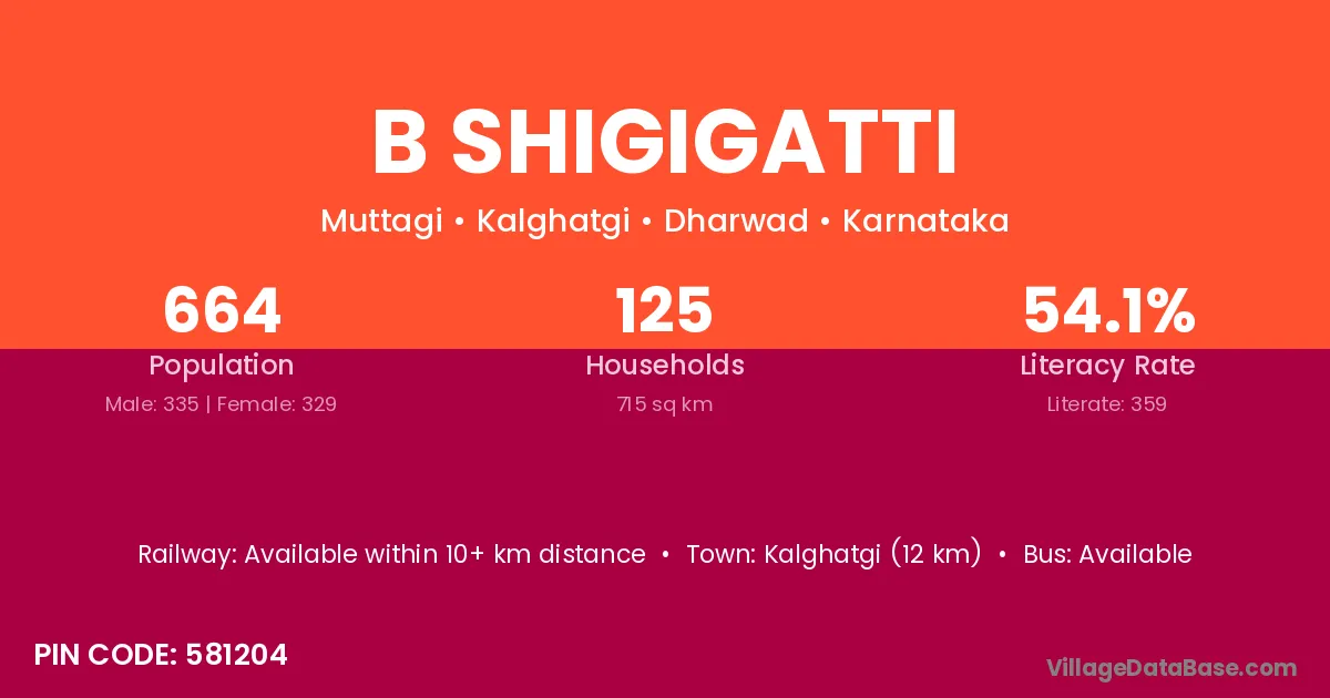 B Shigigatti village has a total population of 664 people, of which 335 are males and 329 are females.