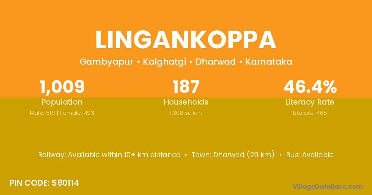 Lingankoppa village has a total population of 1,009 people, of which 516 are males and 493 are females.