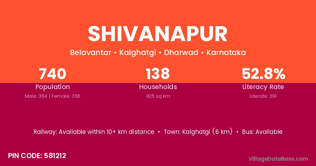 Kalghatgi (6 km) is the nearest town to Shivanapur village for major economic activities and is located approximately 6 km away.
