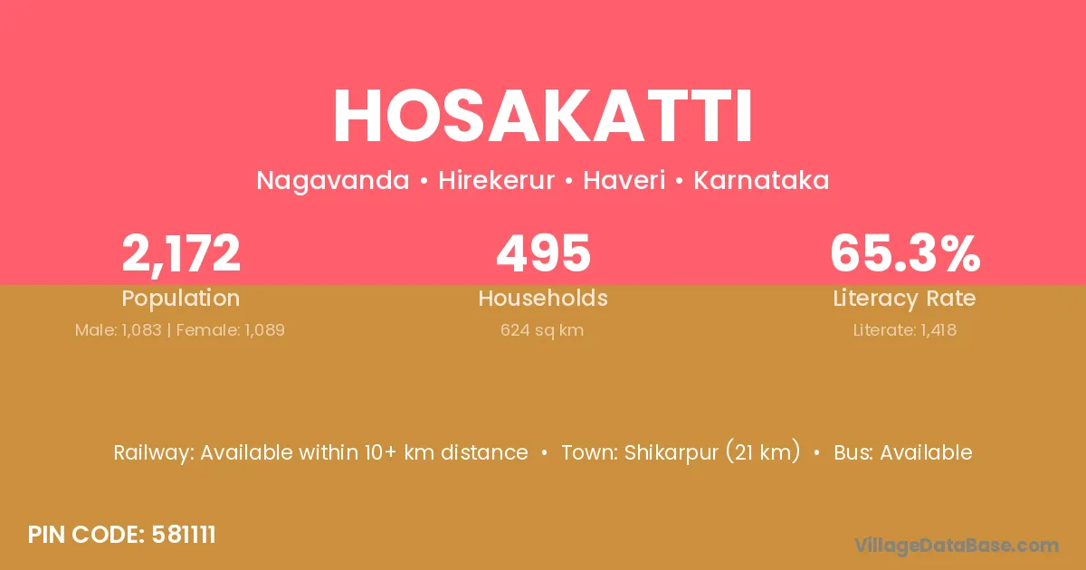 Kundgol (22 km) is the nearest town to Hosakatti village for major economic activities and is located approximately 22 km away.