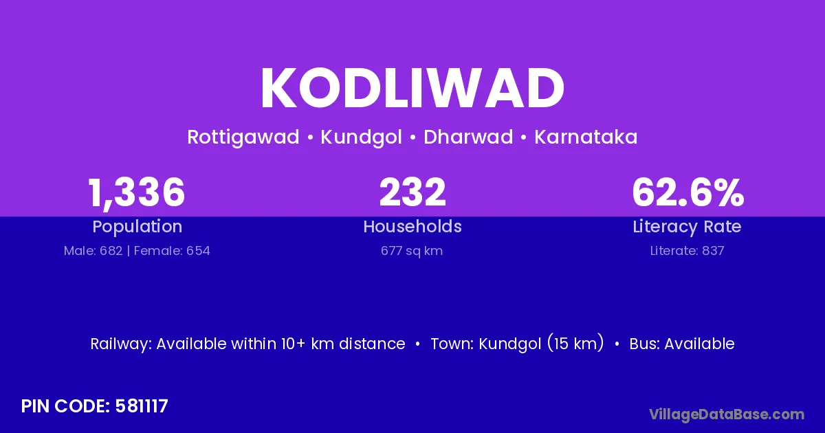 Kundgol (15 km) is the nearest town to Kodliwad village for major economic activities and is located approximately 15 km away.