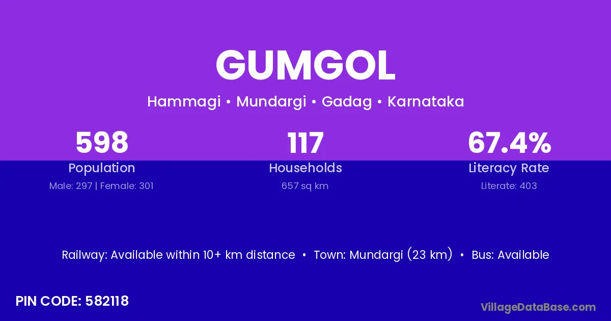 Mundargi (23 km) is the nearest town to Gumgol village for major economic activities and is located approximately 23 km away.