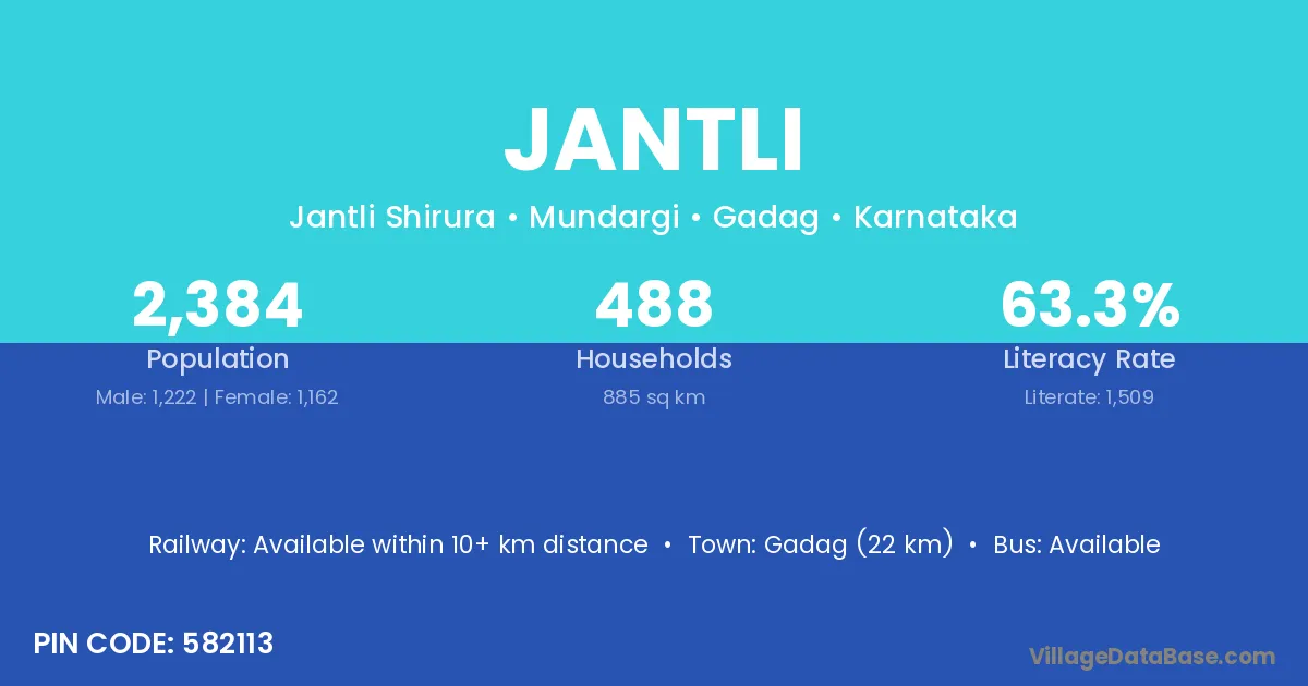 Gadag (22 km) is the nearest town to Jantli village for major economic activities and is located approximately 22 km away.