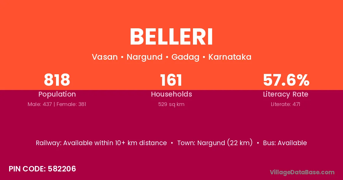 Nargund (22 km) is the nearest town to Belleri village for major economic activities and is located approximately 22 km away.