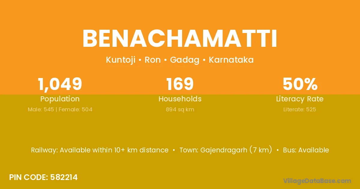 Benachamatti village has a total population of 1,049 people, of which 545 are males and 504 are females.