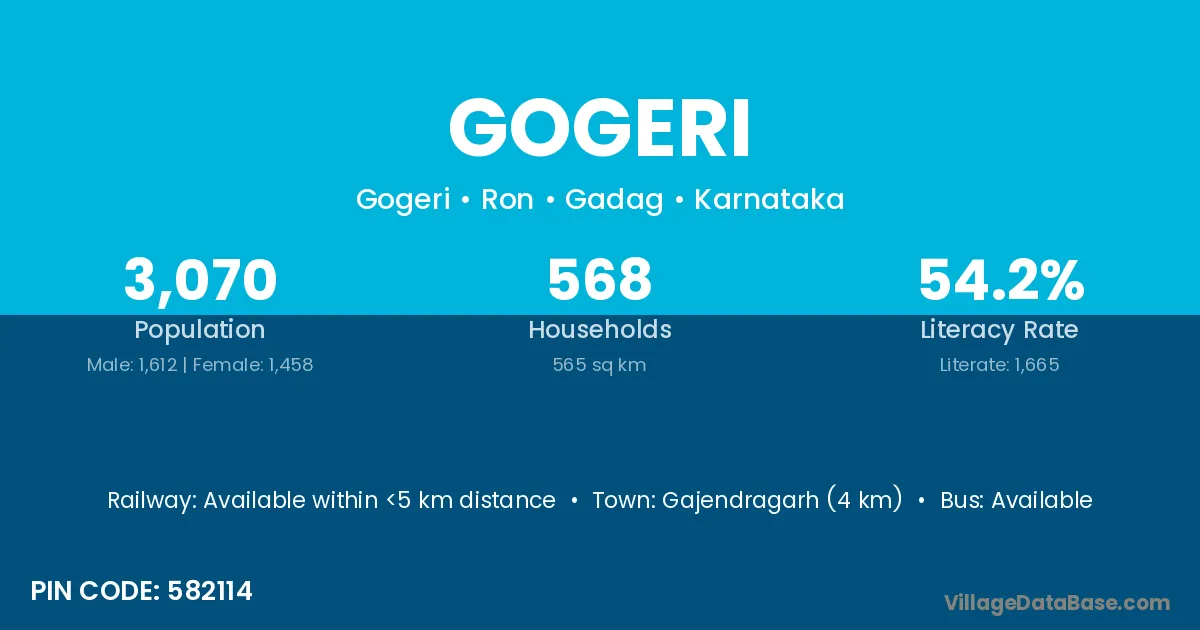 According to Census 2011 information, the village code of Gogeri village is 582114.