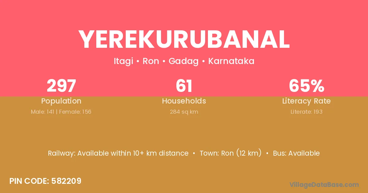 Ron (12 km) is the nearest town to Yerekurubanal village for major economic activities and is located approximately 12 km away.
