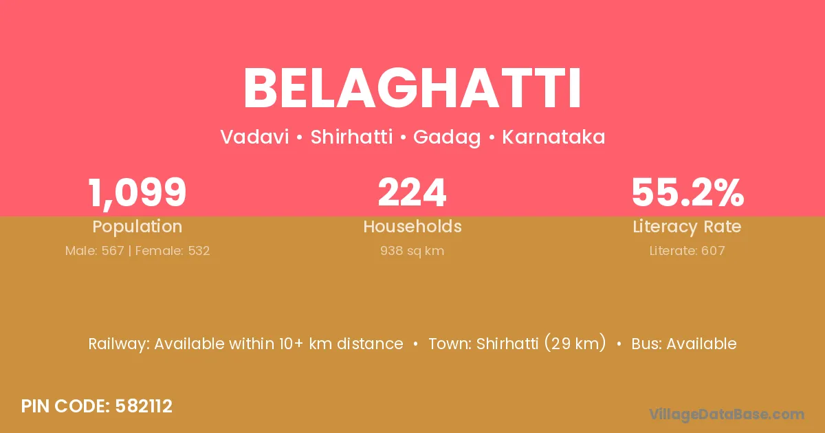 Shirhatti (29 km) is the nearest town to Belaghatti village for major economic activities and is located approximately 29 km away.