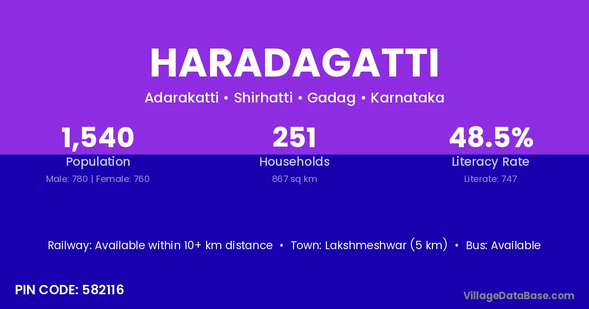Lakshmeshwar (5 km) is the nearest town to Haradagatti village for major economic activities and is located approximately 5 km away.
