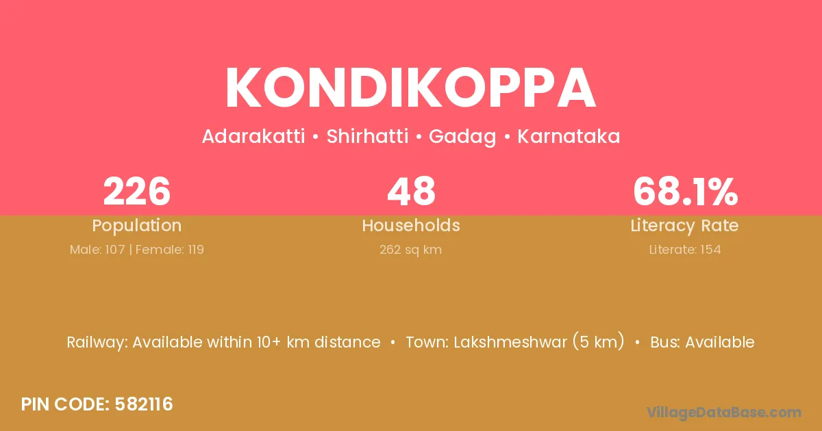 Lakshmeshwar (5 km) is the nearest town to Kondikoppa village for major economic activities and is located approximately 5 km away.
