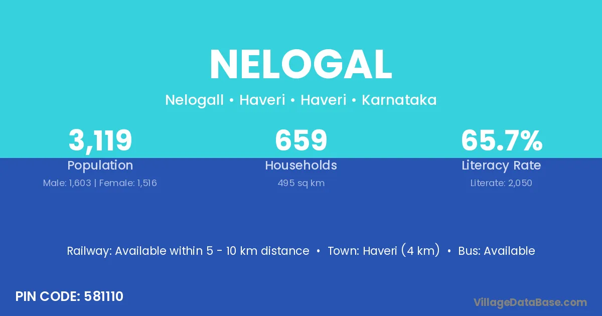 Lakshmeshwar (17 km) is the nearest town to Nelogal village for major economic activities and is located approximately 17 km away.