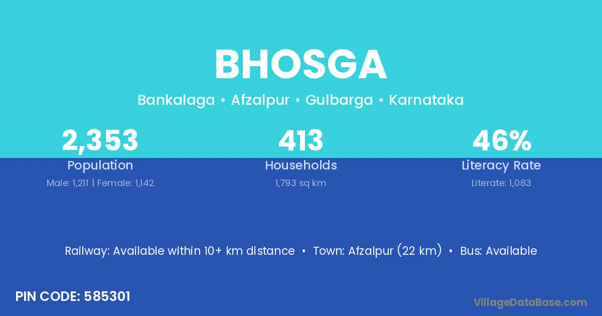 Afzalpur (22 km) is the nearest town to Bhosga village for major economic activities and is located approximately 22 km away.