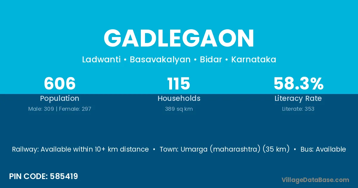 According to Census 2011 information, the village code of Gadlegaon village is 585314.