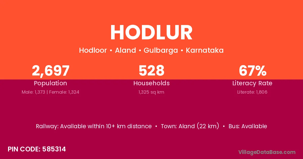 Aland (22 km) is the nearest town to Hodlur village for major economic activities and is located approximately 22 km away.