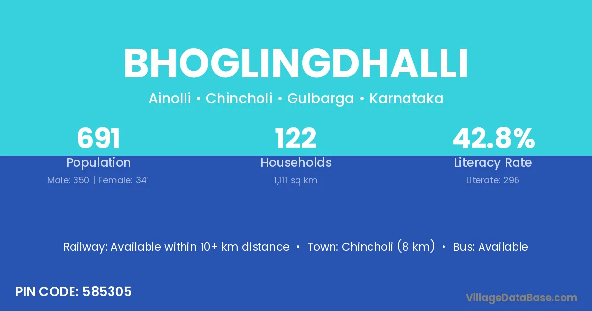 Chincholi (8 km) is the nearest town to Bhoglingdhalli village for major economic activities and is located approximately 8 km away.