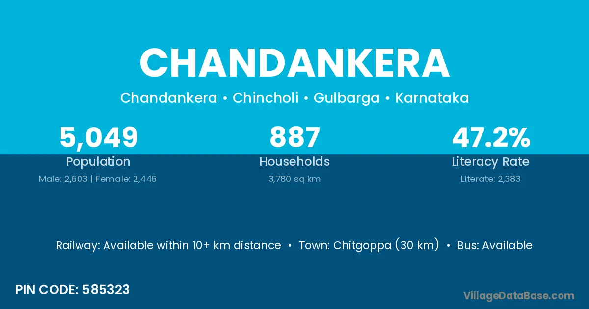 Chitgoppa (30 km) is the nearest town to Chandankera village for major economic activities and is located approximately 30 km away.