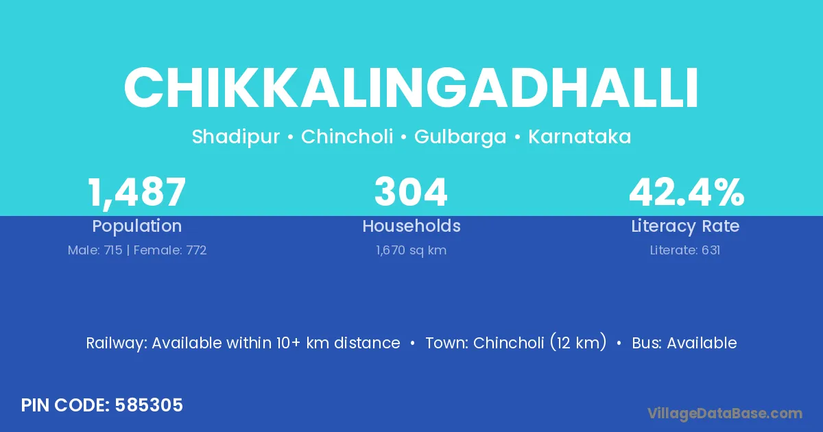 Chincholi (12 km) is the nearest town to Chikkalingadhalli village for major economic activities and is located approximately 12 km away.