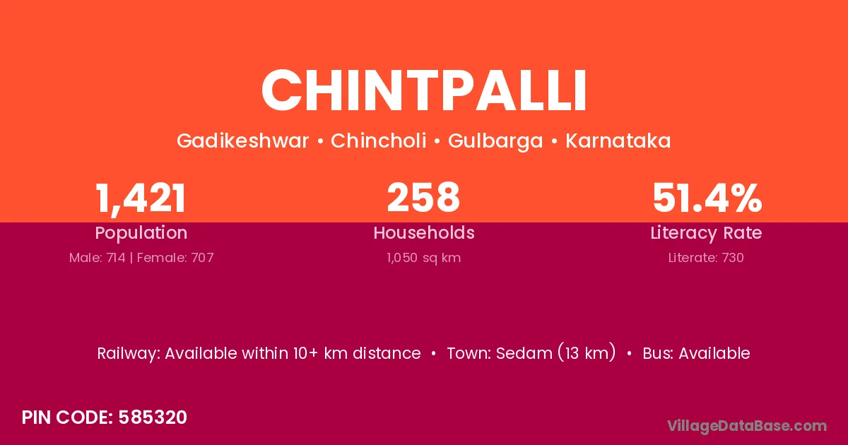 Sedam (13 km) is the nearest town to Chintpalli village for major economic activities and is located approximately 13 km away.