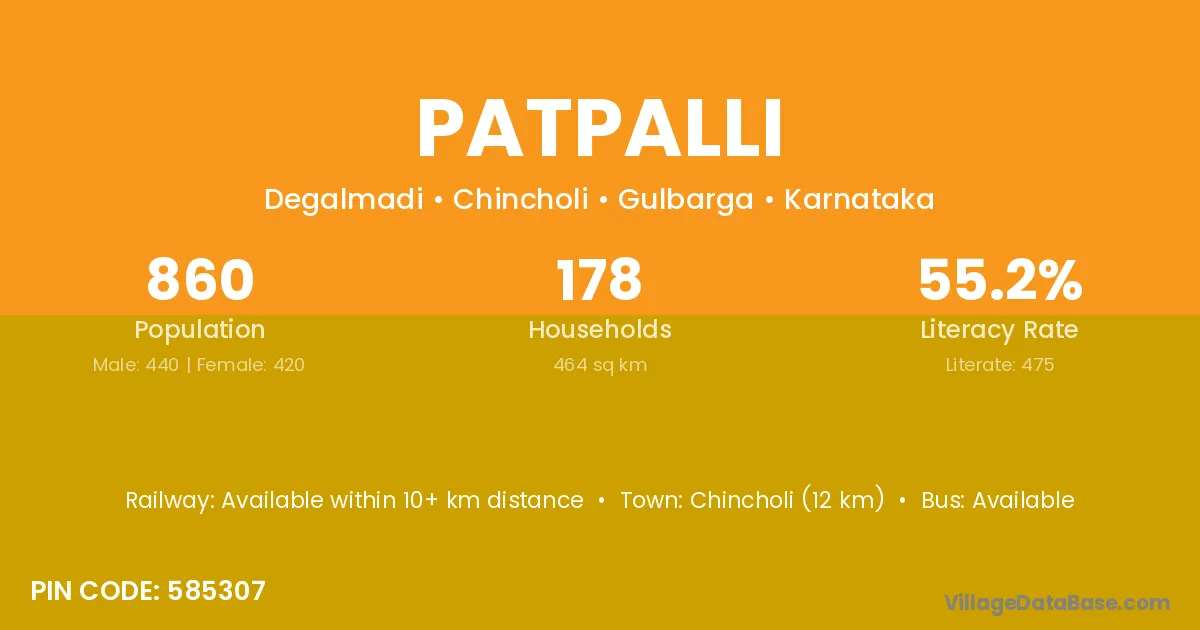 Chincholi (12 km) is the nearest town to Patpalli village for major economic activities and is located approximately 12 km away.