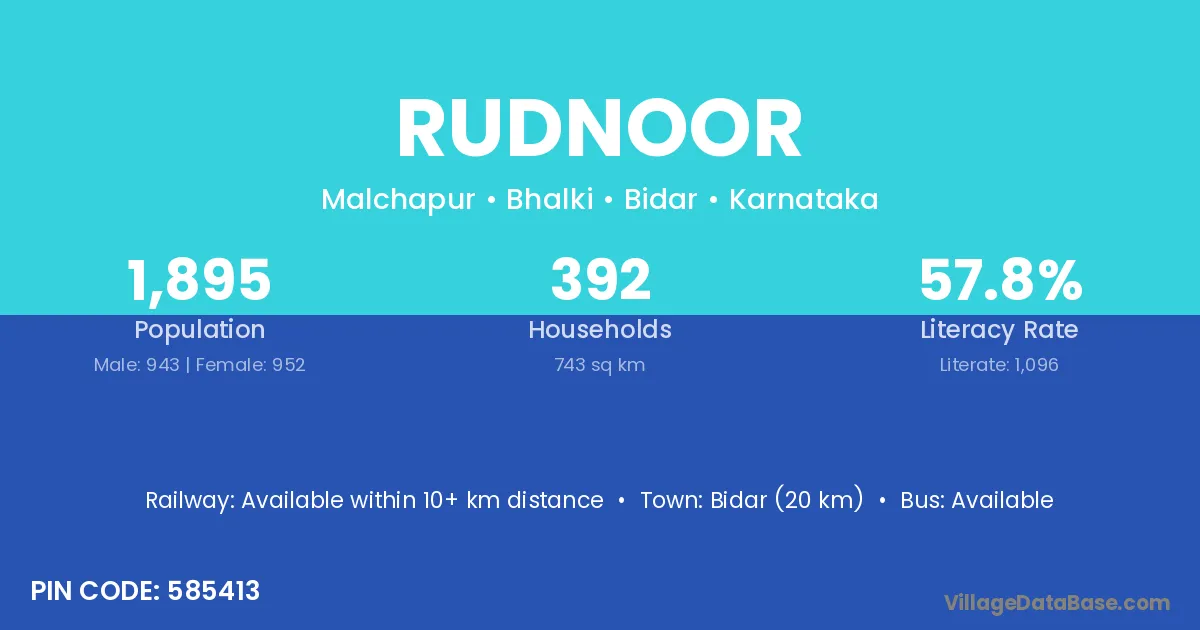 According to Census 2011 information, the village code of Rudnoor village is 585320.