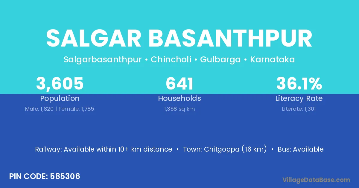 Chitgoppa (16 km) is the nearest town to Salgar Basanthpur village for major economic activities and is located approximately 16 km away.