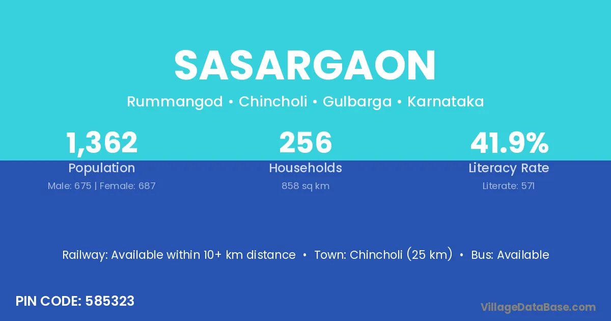 Chincholi (25 km) is the nearest town to Sasargaon village for major economic activities and is located approximately 25 km away.