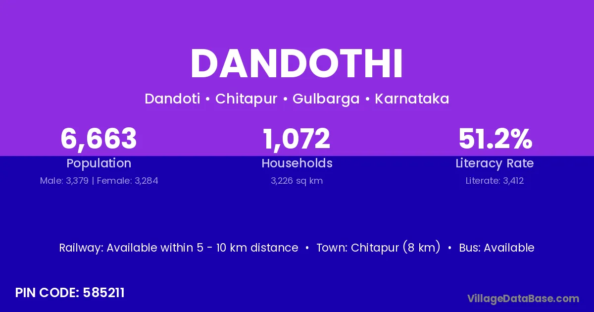 Chitapur (8 km) is the nearest town to Dandothi village for major economic activities and is located approximately 8 km away.