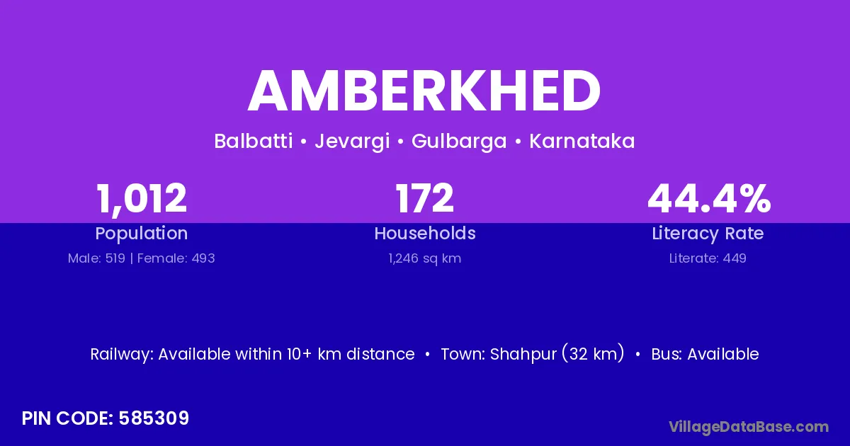 Shahpur (32 km) is the nearest town to Amberkhed village for major economic activities and is located approximately 32 km away.