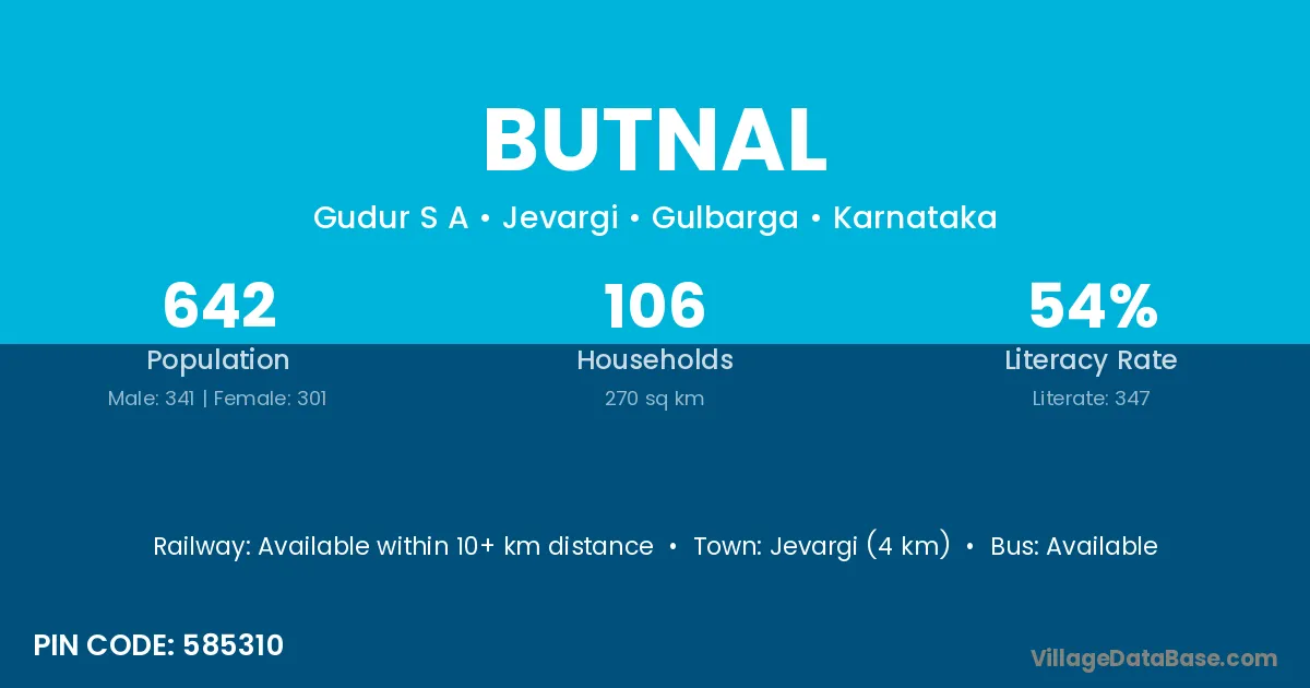 Jevargi (4 km) is the nearest town to Butnal village for major economic activities and is located approximately 4 km away.