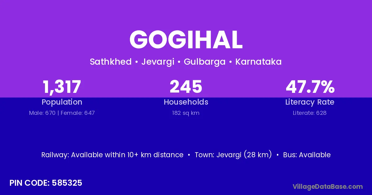 Jevargi (28 km) is the nearest town to Gogihal village for major economic activities and is located approximately 28 km away.