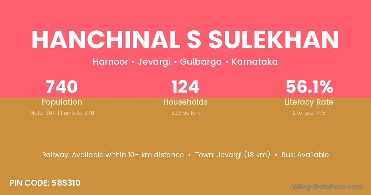 Hanchinal S Sulekhan village has a total population of 740 people, of which 364 are males and 376 are females.