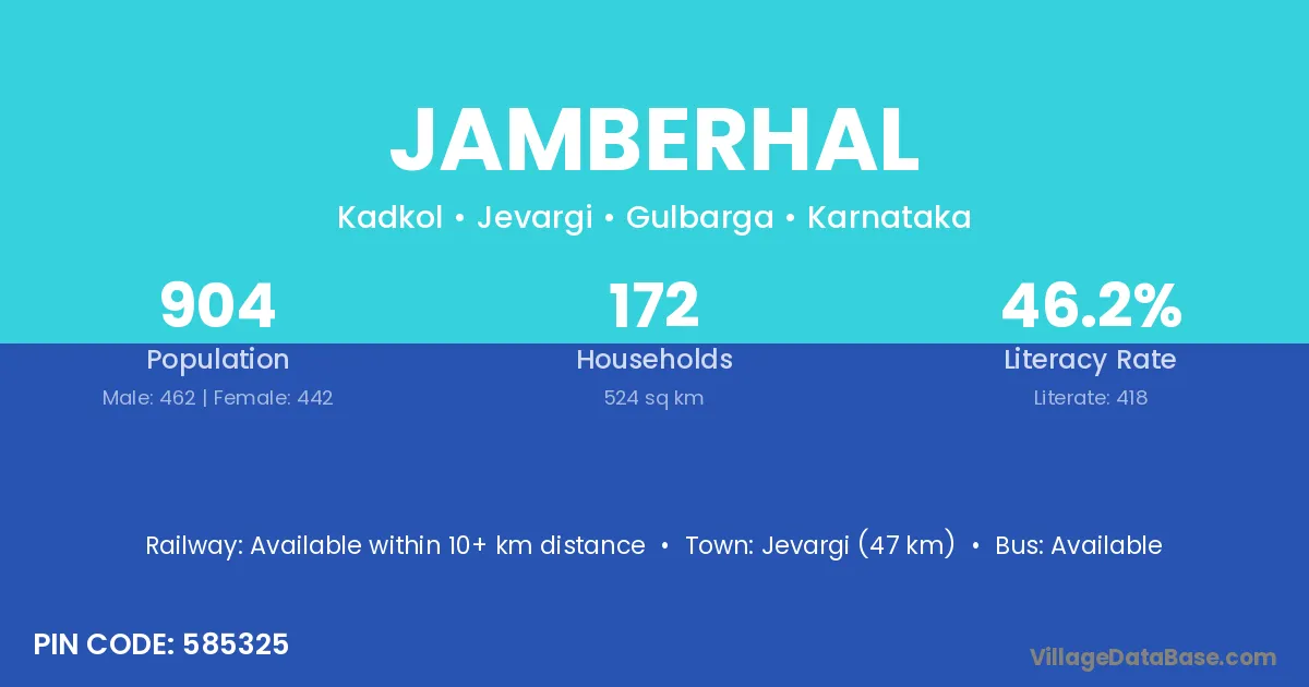 Jevargi (47 km) is the nearest town to Jamberhal village for major economic activities and is located approximately 47 km away.