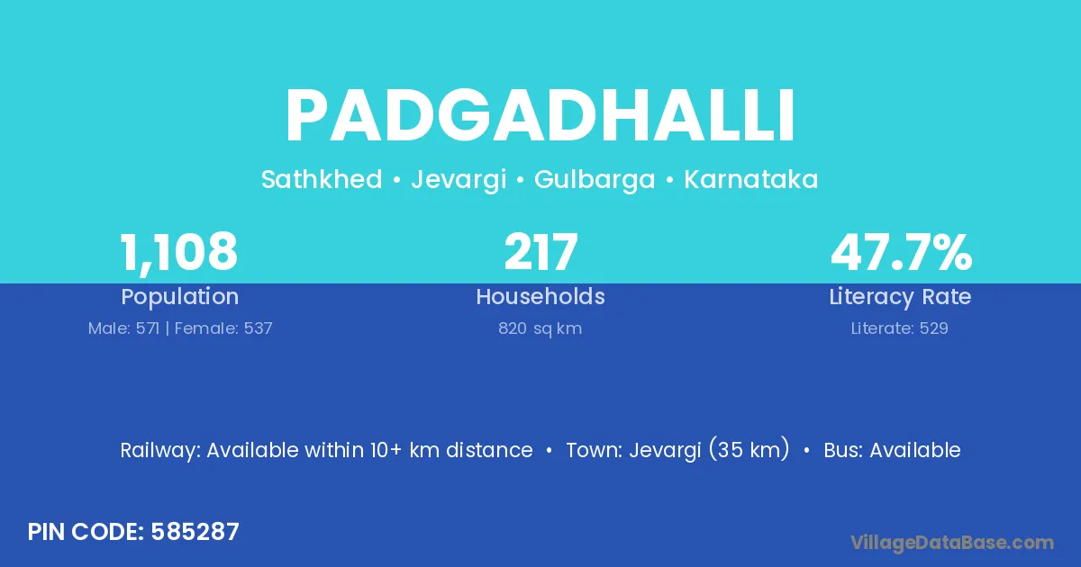 Jevargi (35 km) is the nearest town to Padgadhalli village for major economic activities and is located approximately 35 km away.