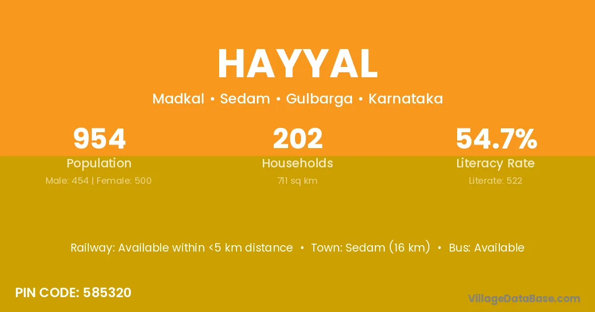 Sedam (16 km) is the nearest town to Hayyal village for major economic activities and is located approximately 16 km away.
