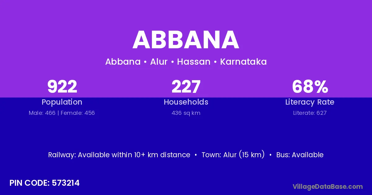 Alur (15 km) is the nearest town to Abbana village for major economic activities and is located approximately 15 km away.
