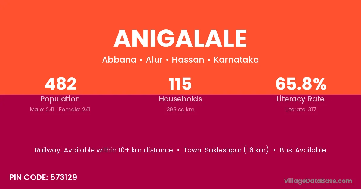 Sakleshpur (16 km) is the nearest town to Anigalale village for major economic activities and is located approximately 16 km away.